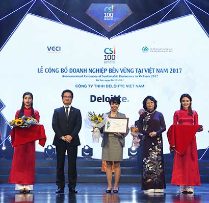 After a thorough evaluation process, the Rating Board selected the top 100 businesses with the most methodical operation and sustainable development strategies in 2017. Within which, Deloitte Vietnam ranks as one of the top 10 most sustainable businesses in Vietnam in trade-service sector.