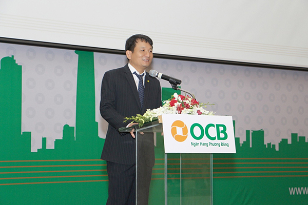 OCB CEO Mr. Nguyen Dinh Tung makes an address during the year-end review of the bank's business performance in 2016 and targets for 2017