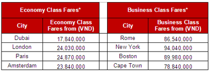 Emirates passengers travelling from Ho Chi Minh City or Hanoi can enjoy the special fares, inclusive of taxes and surcharges, when booked during the promotional period on www.emirates.com/vn or through a host of travel agencies. Terms & conditions apply.