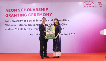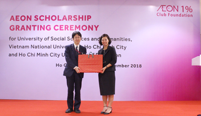 On December 14, AEON 1% collaborated with AEON Group Company Vietnam to grant 40 scholarships to outstanding students of University of Social Sciences and Humanities - Vietnam National University Ho Chi Minh City and Ho Chi Minh City University of Education with total scholarship value of more than VND400 million.