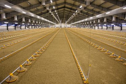 A large broiler house applied automatic Pan feeding system