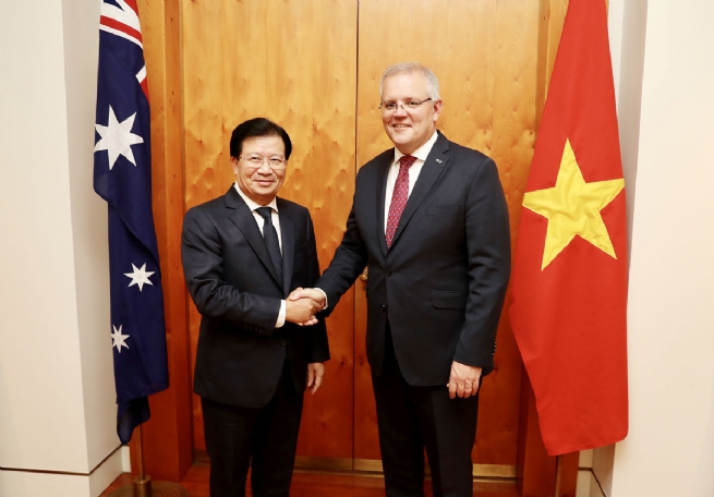 Australian Prime Minister Scott Morrison reaffirmed his commitments to foster the strategic partnership with Viet Nam during his reception for Vietnamese Deputy Prime Minister Trinh Dinh Dung on Monday.
