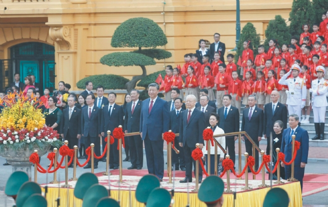 General Secretary Nguyen Phu Trong hosts a ceremonial welcome for China's Communist Party General Secretary and President Xi Jinping