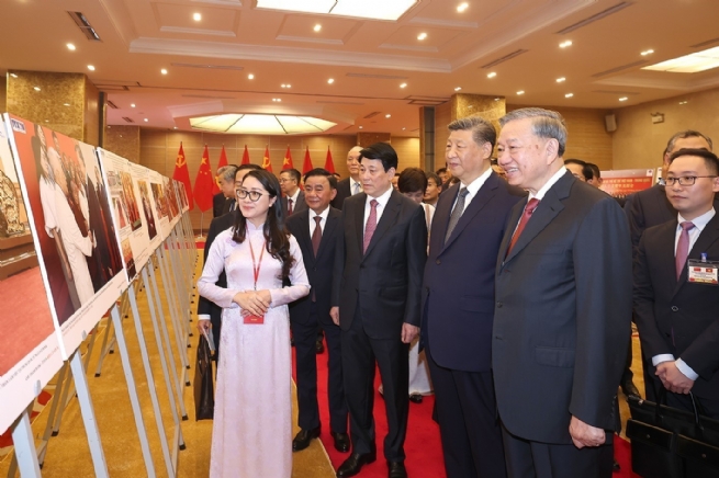 The year 2025 marks the 75th anniversary of diplomatic relations between Vietnam and China (January 18, 1950 – 2025). During his visit to Vietnam, General Secretary and President Xi Jinping held talks with General Secretary To Lam and President Luong Cuong, and met with Prime Minister Pham Minh Chinh and National Assembly Chairman Tran Thanh Man. In a sincere and friendly atmosphere, the two sides briefed each other on their respective Party and national situations, exchanged in-depth views, and reached important common understandings on deepening the comprehensive strategic cooperative partnership and advancing the building of a Vietnam–China community with a shared future of strategic significance, alongside discussions on international and regional issues of mutual concern.