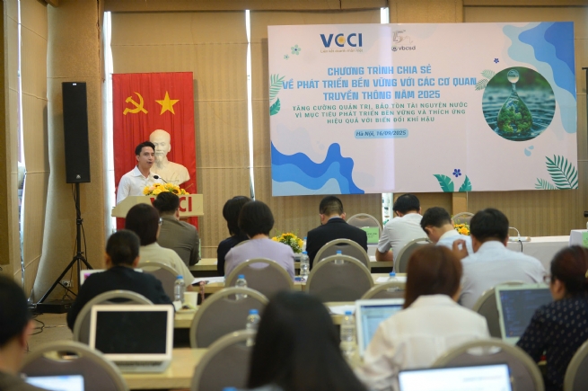 | On September 16, VBCSD-VCCI held the 8th consecutive program “Sharing on Sustainable Development with Media Agencies,” with the theme: “Strengthening water resource governance and conservation for sustainable development goals and effective climate adaptation.” The program aimed to provide updated information on the policies and sustainable development orientations of the Party and Government, while also sharing practices and good business models from the business community. Through this, VBCSD-VCCI seeks to contribute to raising awareness, supporting media agencies in effective reporting, and encouraging the press to accompany businesses more closely on the sustainable development journey. |