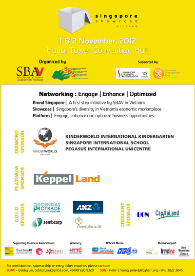 Singapore Business Association Vietnam (SBAV) will hold an event called The Singapore Showcase Vietnam. This event aims to bring together Singapore companies and businesses currently present in Vietnam to showcase our diversity in the Vietnam marketplace, hence creating an enhanced platform for networking opportunities.
