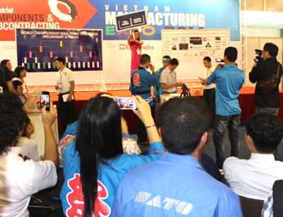 The co-located shows of Vietnam Manufacturing Expo 2014 and Industrial Components and Subcontracting Vietnam (ICS Vietnam 2014) taking place during August 27-29 in Hanoi closed with a great success and were warmly welcomed by the total number of nearly 9,000 trade buyers both local and overseas from 25 countries and territories such as Australia, China, Germany, India, Italy, Japan, Korea, Netherlands, Spain, Taiwan, UK, USA, ASEAN countries and others.