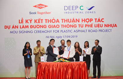 | To spread and promote businesses to replicate the circular economy model, Dow Chemical Vietnam LLC cooperated with Deep C Co. Ltd. to build the first road from plastic waste in Vietnam at the DEEP C Hai Phong industrial complex. The 1 km section of the road is expected to be completed in September 2019. The project is implemented with the purpose of recycling 4 tons of elastic plastic packaging, equivalent to about 1 million plastic packages, into roads. |