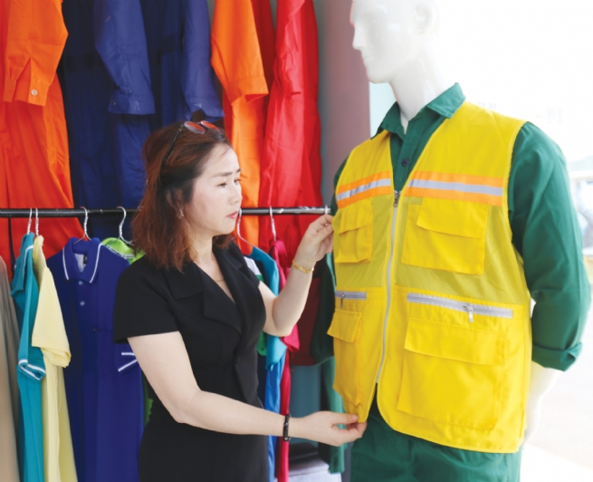 Director Nguyen Hai Hang said, “Previously, we only cared about exports while the demand from offices, schools, companies and factories across the country is huge. Currently, Ju Young Company is manufacturing uniforms and protective equipment for the domestic market.